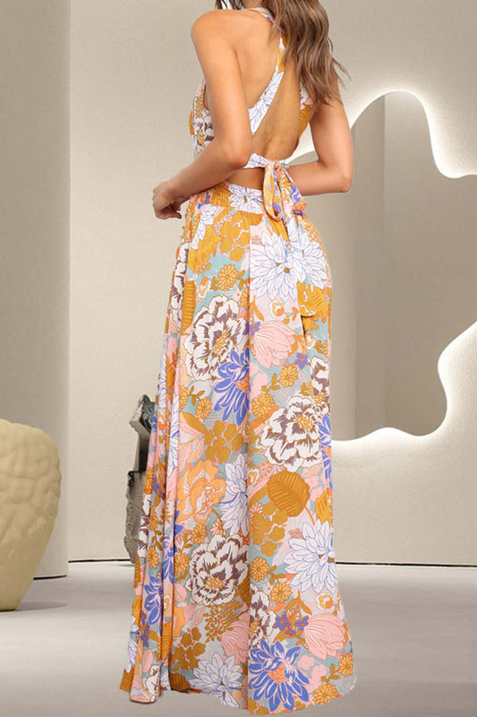 Tied Printed Grecian Sleeveless Maxi Dress