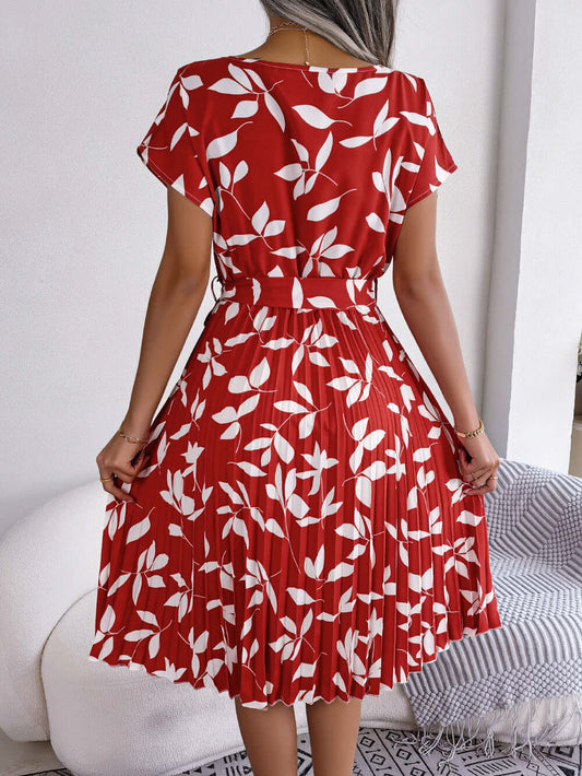 Double Take Full Size Printed Drawstring Short Sleeve Dress