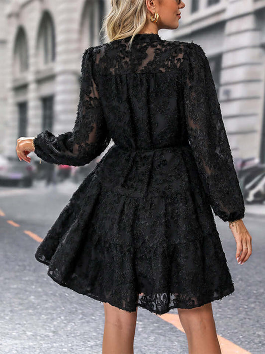Printed Ruffle Trim Smocked Long Sleeve Mini Dress