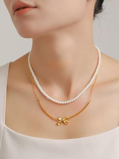 Freshwater Pearl Titanium Steel Double-Layered Necklace