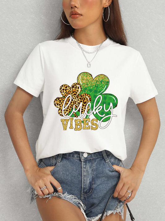 LUCKY VIBES Round Neck Short Sleeve T-Shirt