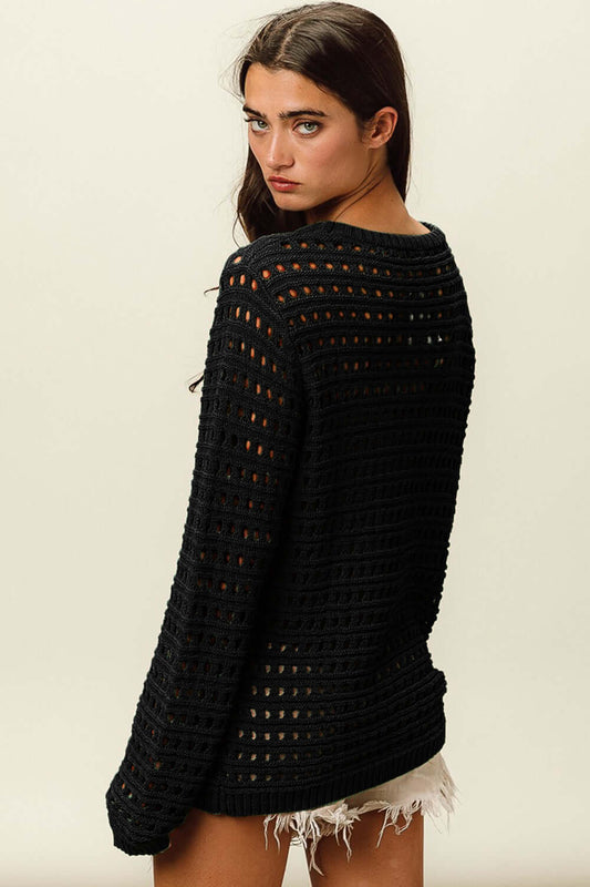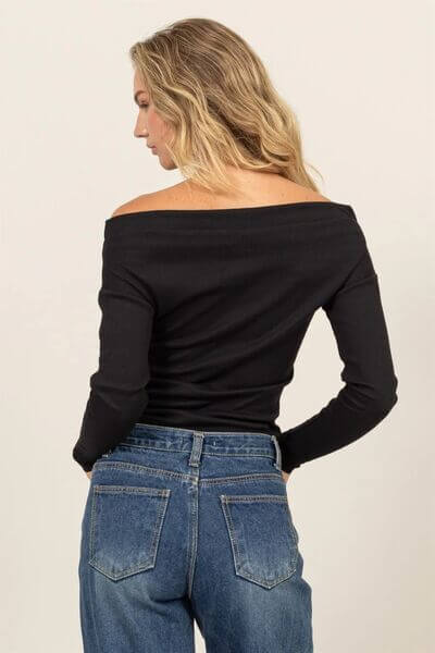 Cable-Knit Off-Shoulder Long Sleeve Knit Top