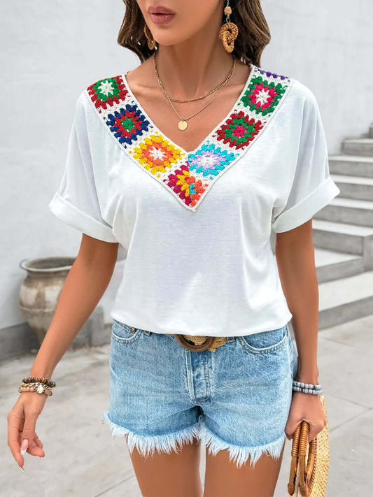 Embroidered Detail Floral Ruffle Cap Sleeve Blouse