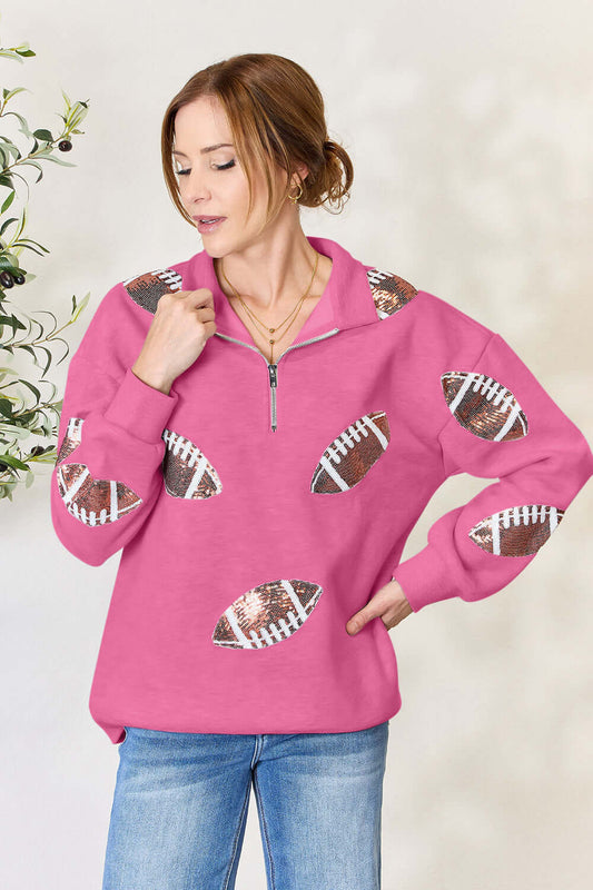 Full Size Sequin Football Half Zip Long Sleeve Sweatshirt